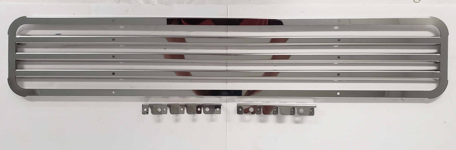 Big Truck Hoods offers this superb Freightliner Coronado Stainless Steel Bumper Grille semi truck part for your big truck. Grilles help cooled air get to the radiator or oil coolers. As you know, when you haul heavy loads, you are putting a lot of strain on your engine, which makes it hotter than if you weren't hauling. Cool air flows over your engine, and coolers prevent your semi truck from overheating and lengthening the service life. Grilles can make your semi truck look good and stand out from the crowd. If you are looking for Freightliner semi truck parts, such as bumpers and grilles, shop Big Truck Hoods and all our Freightliner parts online today!