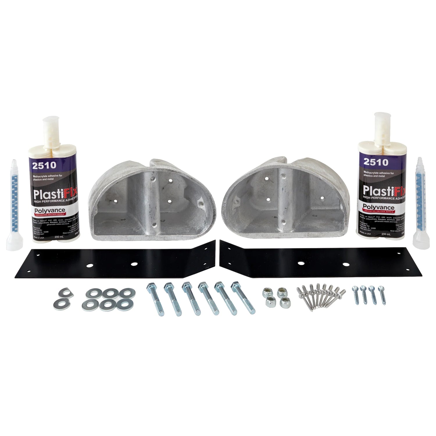 Polyvance has repair kits for the round brackets and square brackets. Check your hood to determine which version you need.