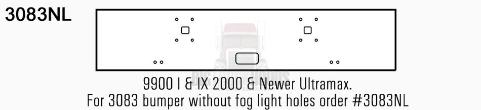 International 9900 I & IX Parachoques de acero cromado sin luces antiniebla